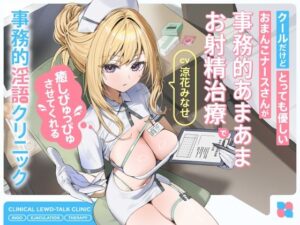 【エロ漫画】クールだけどとっても優しいおまんこナースさんが‘事務的あまあまお射精治療’で癒しぴゅっぴゅさせてくれる、‘事務的淫語クリニック’【バイノーラル】:インゴヒゴ